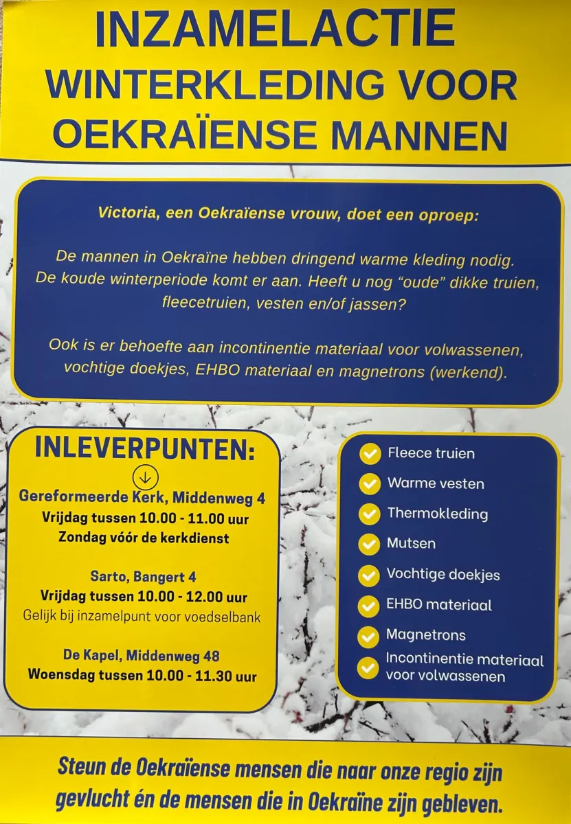 De mannen in Oekraïne hebben dringend warme winterkleding nodig. Heeft u nog goede truien, winterjassen ?