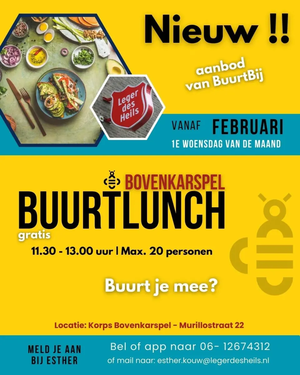 Meer info en aanmelden: https://www.buurtjemee.nl/buurtlunch/